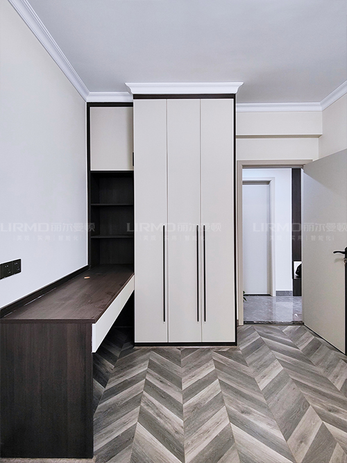 臥室選用一門到頂設(shè)計(jì)收納空間超大,pet膚感柜門使整個(gè)房間看起來干凈簡(jiǎn)潔。