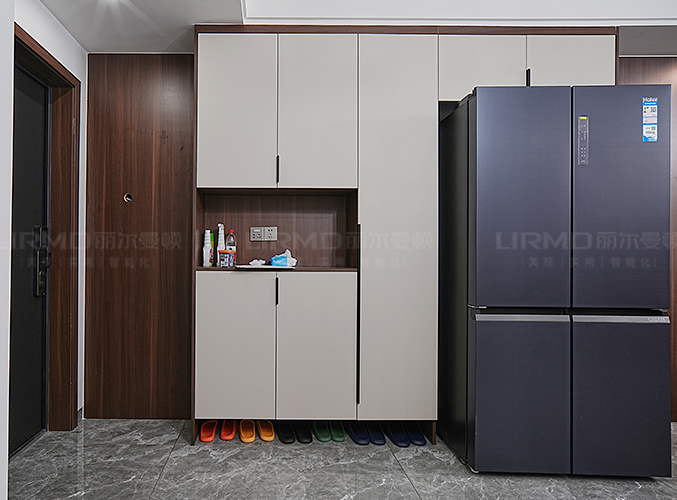 入戶玄關柜,可作為鞋柜/衣柜/收納區,淺色柜門加深色柜體的碰撞,視覺效果更好,
