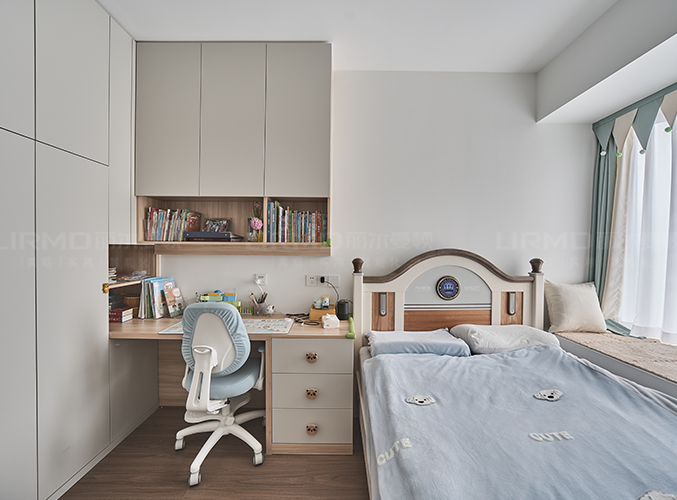 采用衣柜書桌一體設計,既能儲物又能學習。