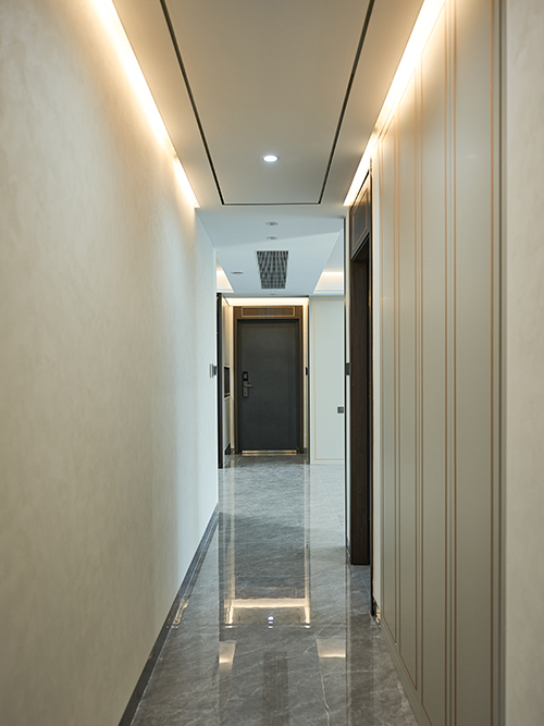 巧用帶燈和射燈,走廊內嵌燈帶氛圍感直接拉滿,溫馨又好看。