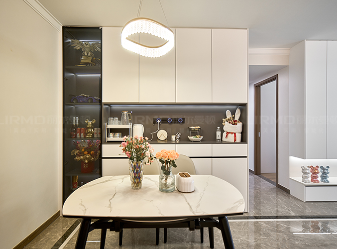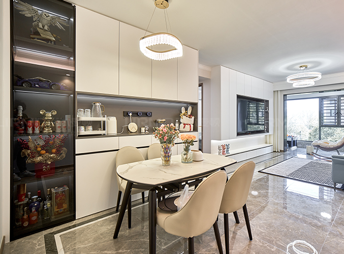 可以擺放自己喜歡的物品,吊燈設計,增強照明實用性的同時又增貼了空間藝術感。