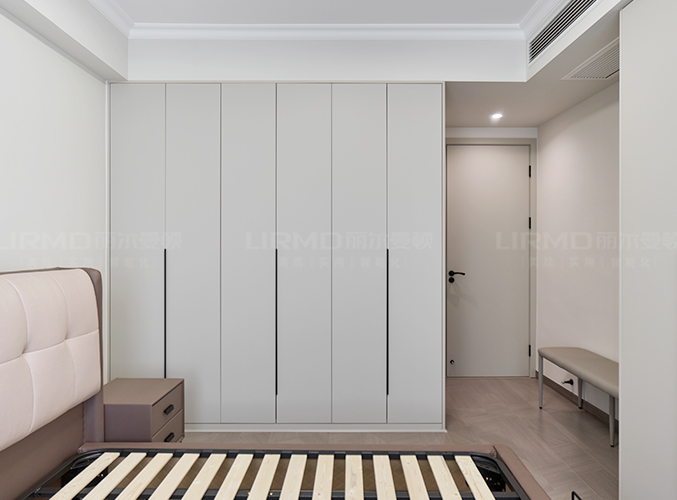 臥室拱形門分割衣帽間,滿墻衣柜實現門墻柜一體化,整體統一高級。
