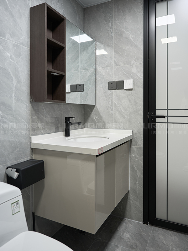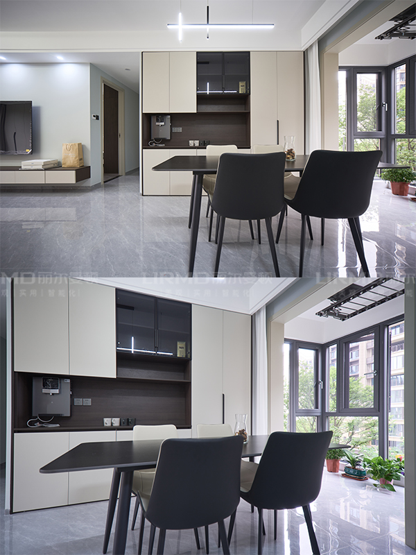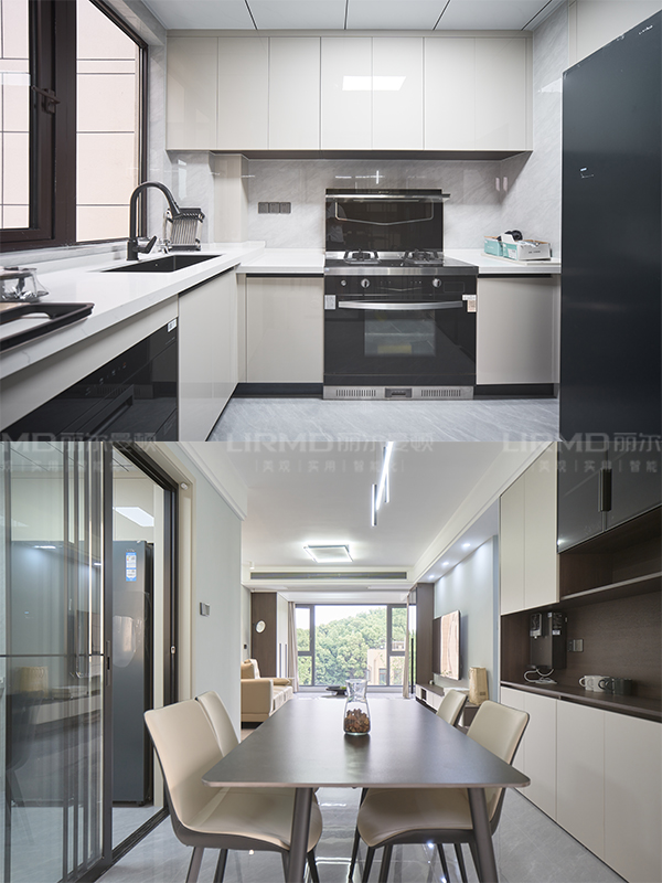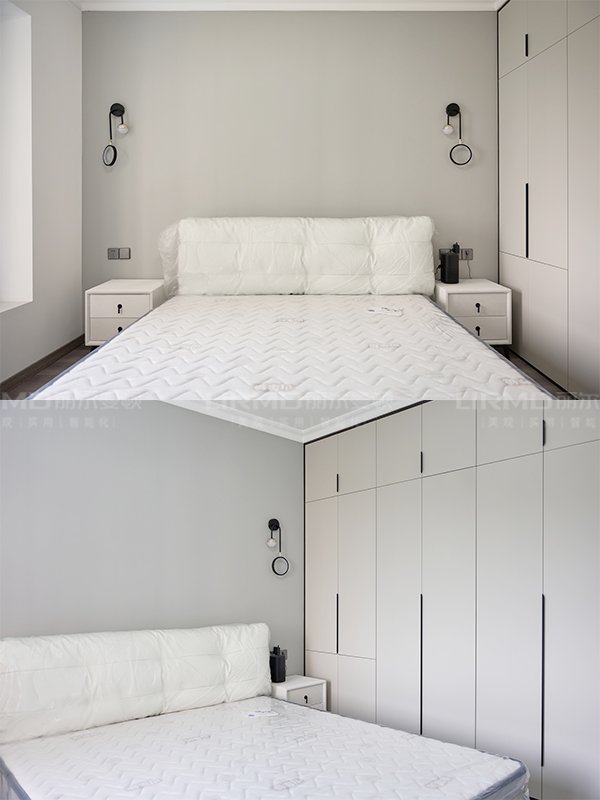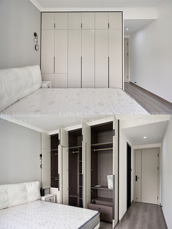 全房共定制了10個柜子,柜體采用足18厚杉木芯板,柜門采用LSB板PET膚感柜門,一門到頂,五金使用原裝進(jìn)口的百隆五金
