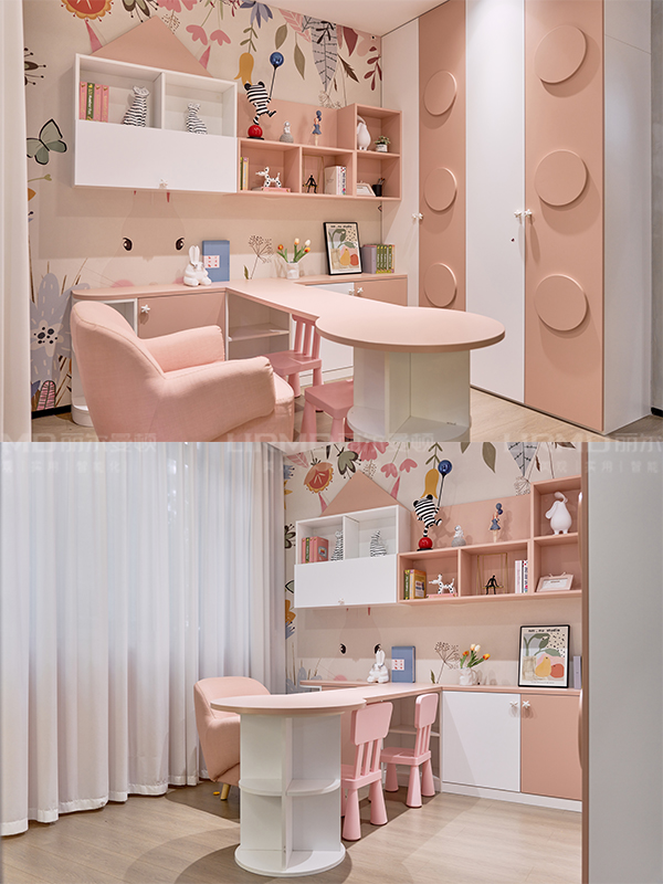 把學習區和休息區分隔開來,不會影響學習,臥室上下鋪設計,下面可以當游戲區,作業做完后可以盡情玩樂