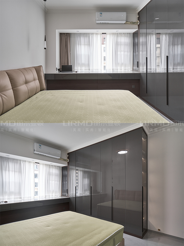 柜體采用足18厚杉木芯板,柜門采用LSB板PET膚感柜門,一門到頂,五金使用原裝進(jìn)口的百隆五金