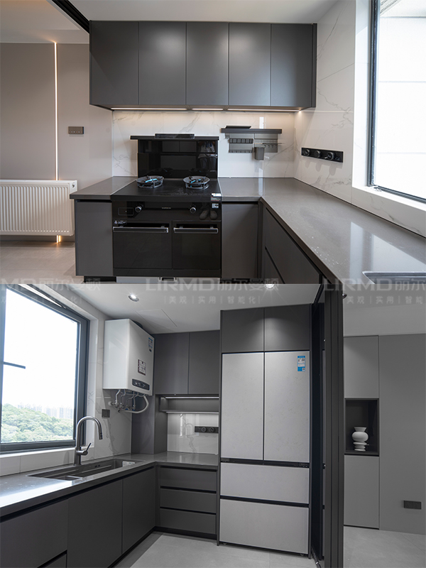 全屋高端定制:柜體板材18厚杉木實芯板,柜門有pet膚感、高光、超晶、五金使用原裝進口奧地利百隆五金