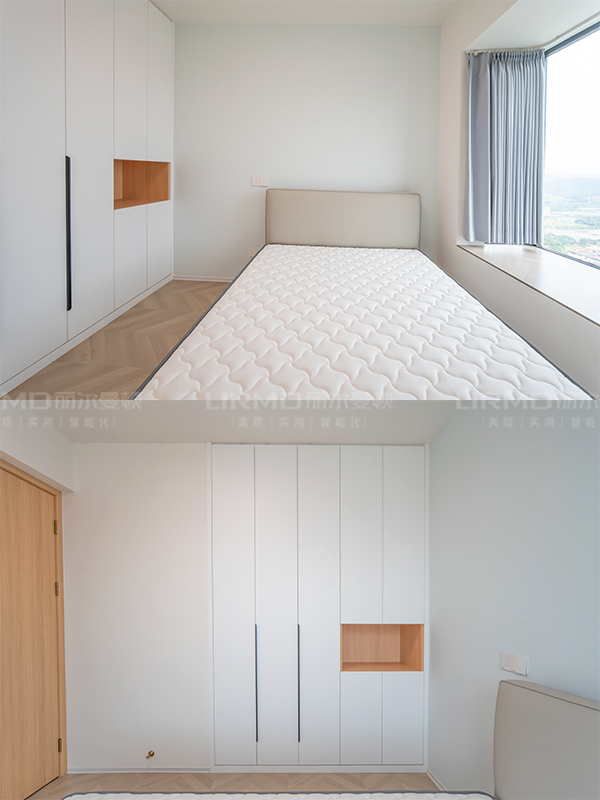 高端全屋定制:柜體板材為十環(huán)認(rèn)證的萬象天冠18mm厚杉木芯板、柜門是歐松板雙飾面門、奧地利進口百隆五金。