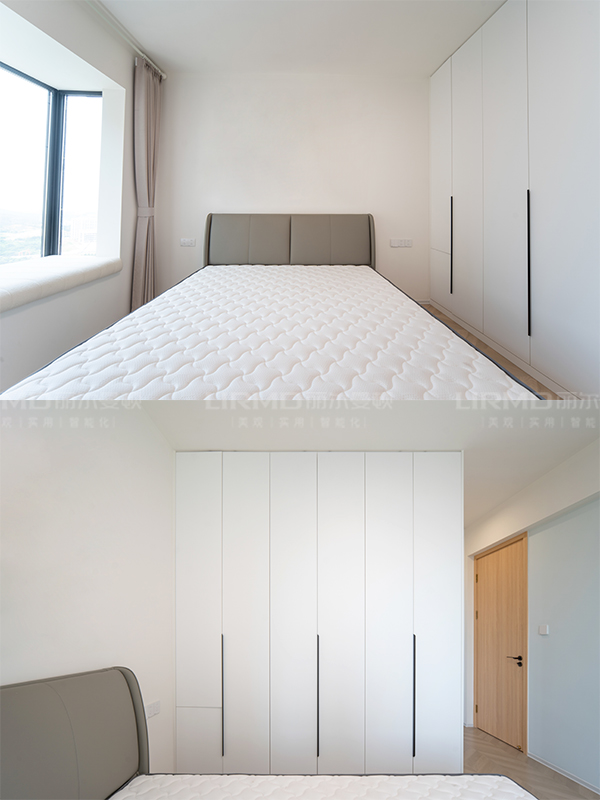 一門到頂柜門無拉手設(shè)計,簡潔又美觀。