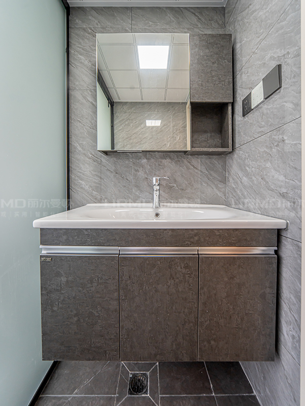兩個定制浴室柜,以及同色墻板、同色到頂房門)