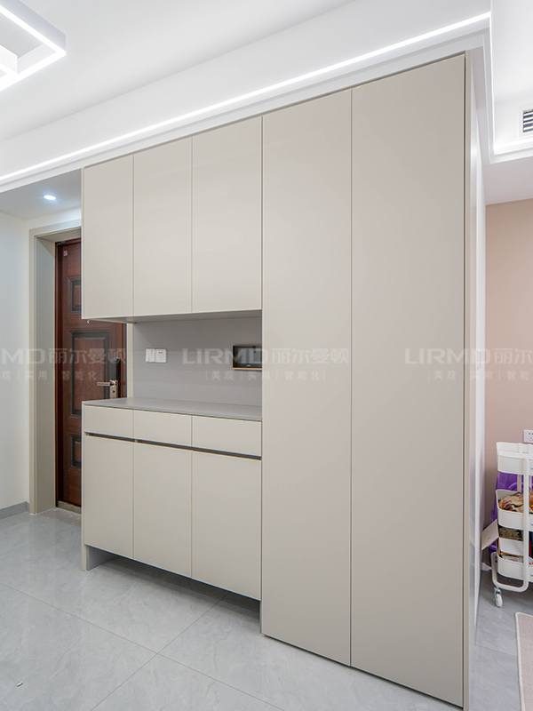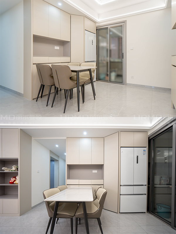 入戶玄關柜+餐邊柜+嵌入式冰箱柜+櫥柜+電視機柜+沙發(fā)背景墻