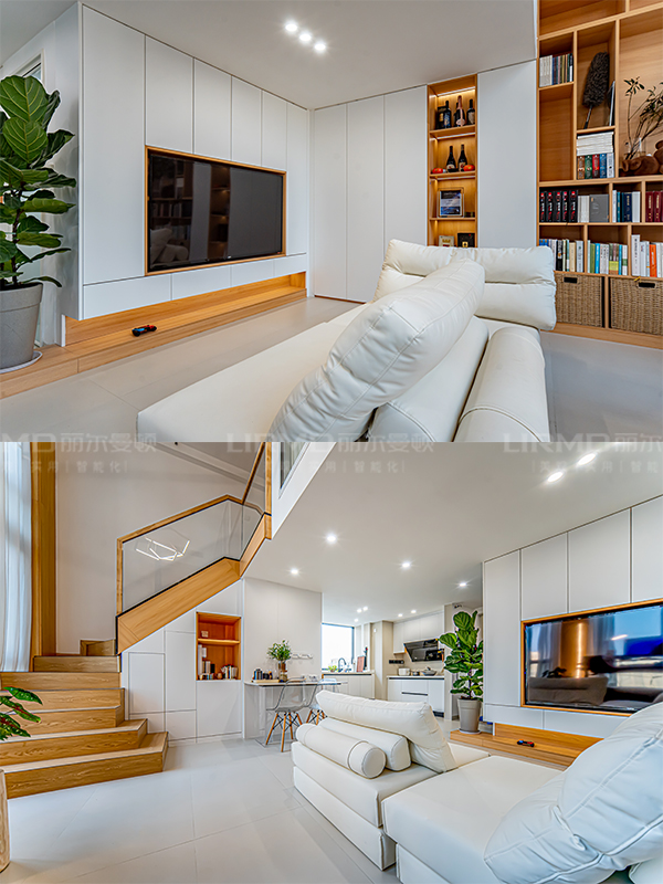 滿墻電視背景墻連接整墻書柜,顏值與收納并存