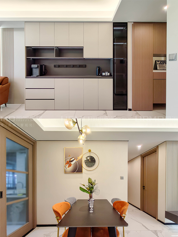 全屋高端定制:柜體板材18厚杉木實芯板,柜門有pet膚感、高光、超晶、五金使用原裝進口奧地利百隆五金