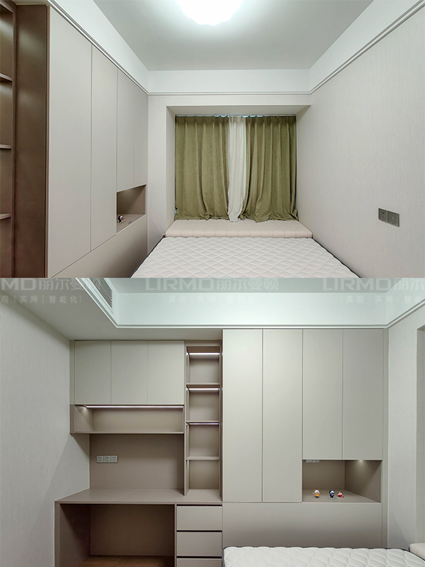 臥室衣柜采用書柜一體化設計,更大限度的利用空間