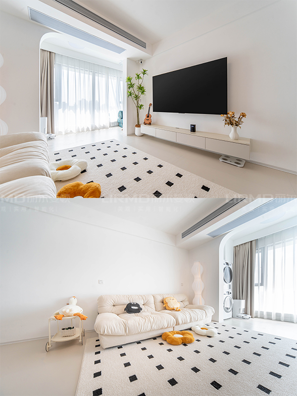 奶油風推崇肌理感強,柔軟、舒適、細膩的。比如羊毛地毯、亞麻沙發畫、棉麻窗簾等都是不錯的選擇。
