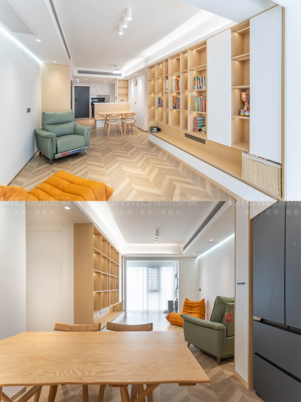 讓客廳面積擴大,使空間更通透,實現客廳與書房一體化。