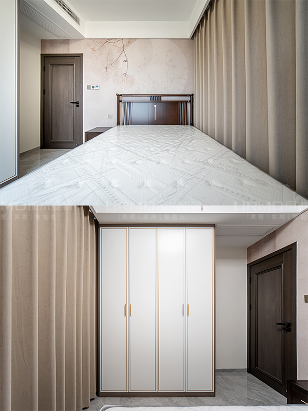 長沙靠譜裝修公司,長沙靠譜全屋定制,臥室衣柜加梳妝臺,新中式風,
