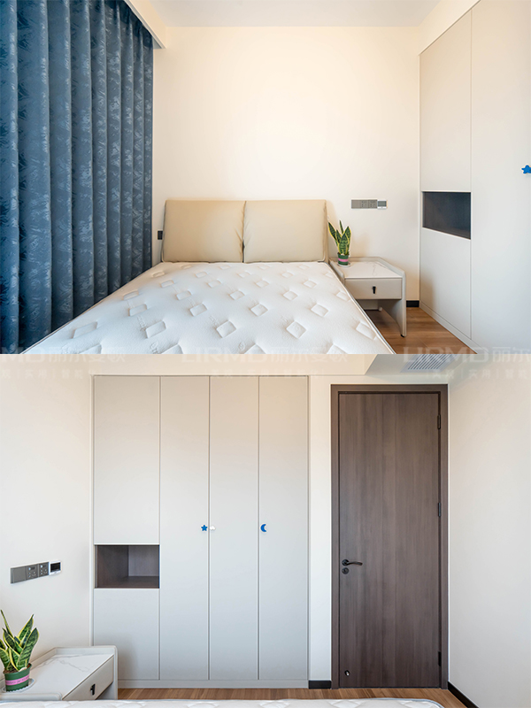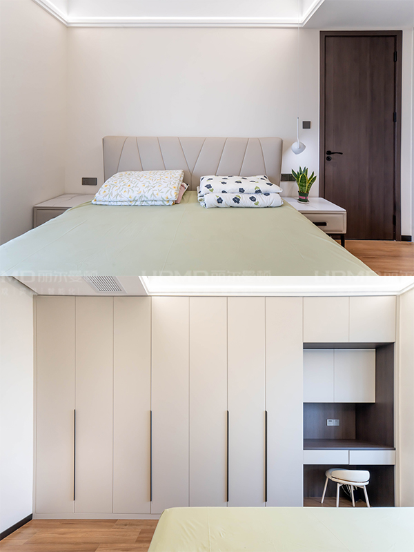 主臥室一整墻衣柜,滿足兩人四季衣物收納。
