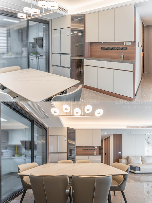 全屋高端定制:柜體板材18厚杉木實芯板,柜門有pet膚感、高光、超晶、五金使用原裝進口奧地利百隆五金