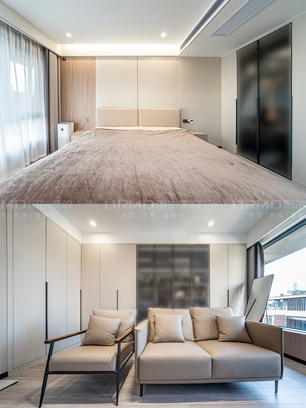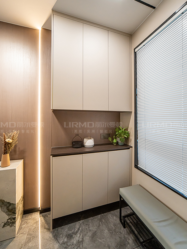 全屋高端定制:柜體板材18厚杉木實芯板,柜門有pet膚感、高光、超晶、五金使用原裝進口奧地利百隆五金