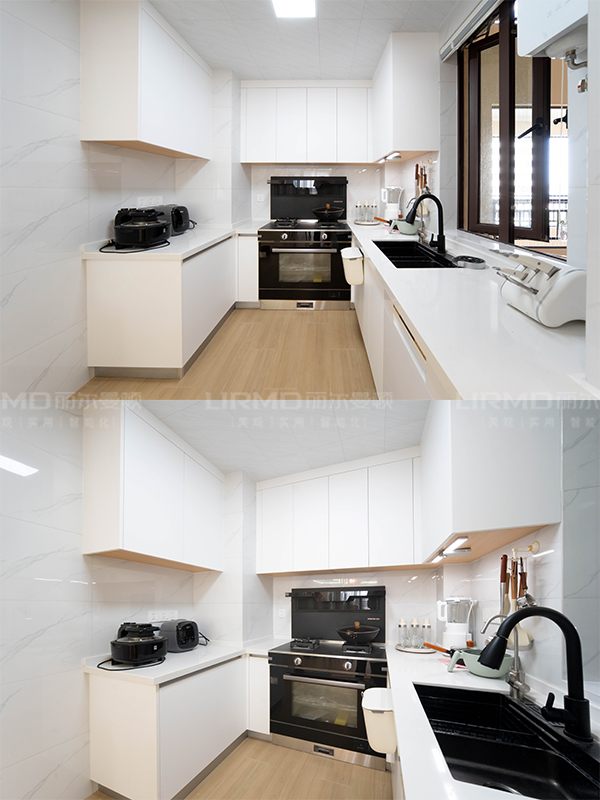 高端全屋定制:柜體板材為十環(huán)認(rèn)證的萬象天冠18mm厚杉木芯板、柜門是歐松板雙飾面門、奧地利進(jìn)口百隆五金。