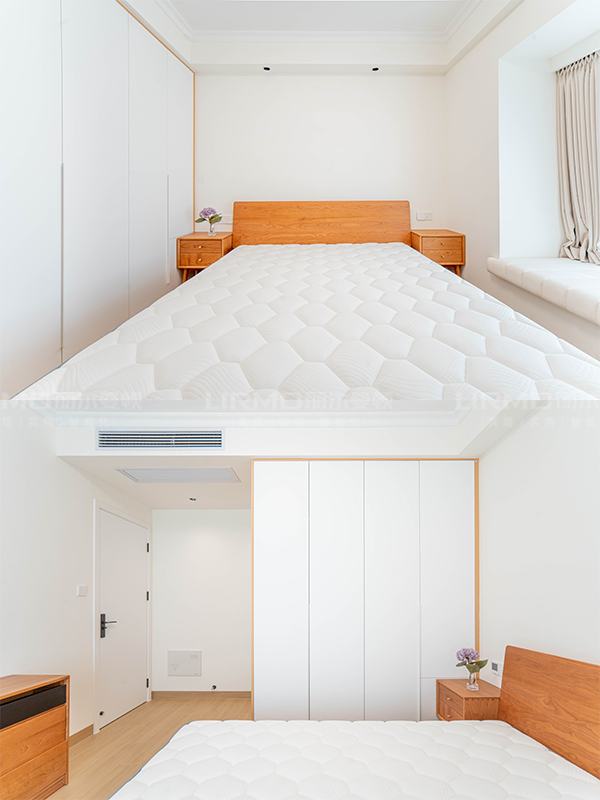主臥做衣帽間調(diào)整原有布局,改善床對廁所的尷尬。?