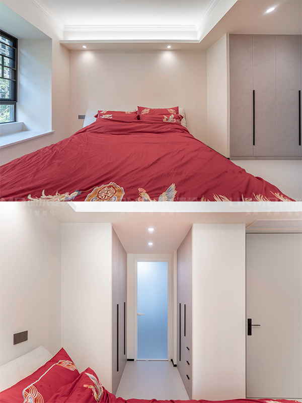 長沙靠譜裝修公司,長沙靠譜全屋定制,臥室衣柜加梳妝臺,現(xiàn)代侘寂風(fēng),