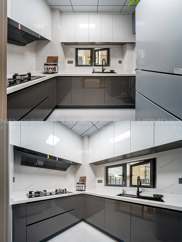 U型櫥柜的設(shè)計,廚房洗切炒動線合一,滿足人體工程學(xué)設(shè)計