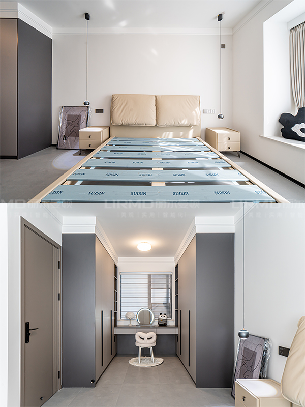 長沙靠譜裝修公司,長沙靠譜全屋定制,臥室衣柜加梳妝臺,現(xiàn)代風(fēng),