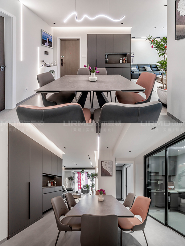 全屋高端定制:柜體板材18厚杉木實芯板,柜門有pet膚感、高光、超晶、五金使用原裝進口奧地利百隆五金