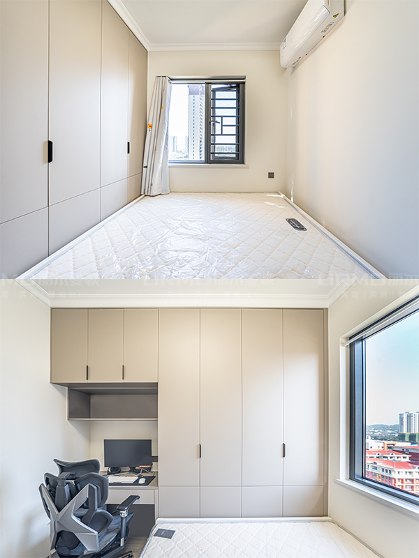 臥室衣柜最書桌衣柜一體化設計,充分利用收納空間