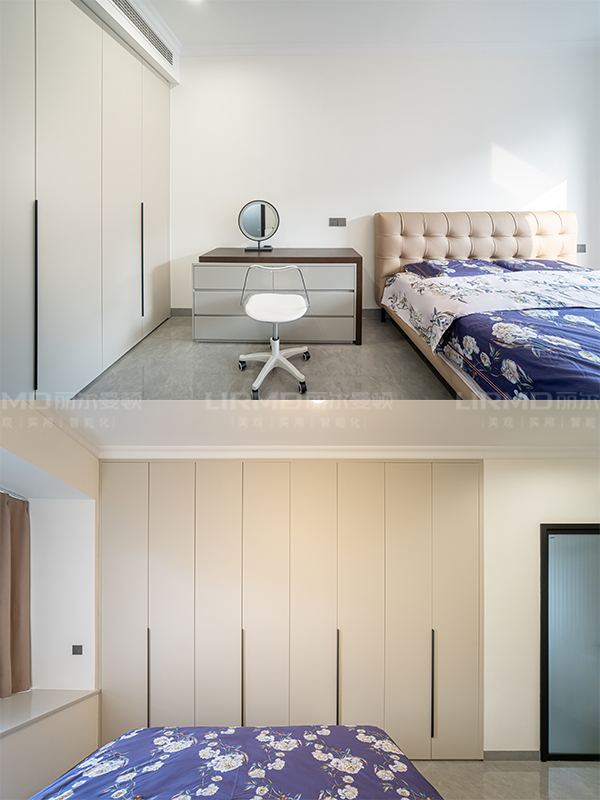 長沙靠譜裝修公司,長沙靠譜全屋定制,臥室衣柜加梳妝臺,現代風,