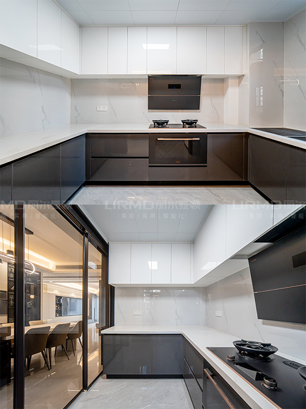 全屋高端定制:柜體板材18厚杉木實芯板,柜門有pet膚感、高光、超晶、五金使用原裝進口奧地利百隆五金