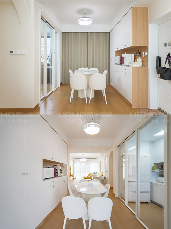 做滿墻電視背景柜和餐邊柜,滿足收納的同時(shí)兼具顏值