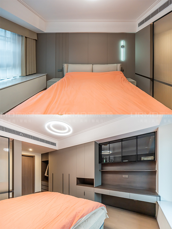 長沙靠譜裝修公司,長沙靠譜全屋定制,臥室衣柜加梳妝臺,意式極簡風,