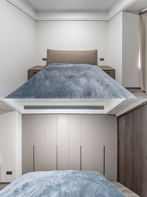 全屋門墻柜一體化定制,采用深咖棕+明亮淺灰的搭配,整體空間既不沉悶又更有層次感