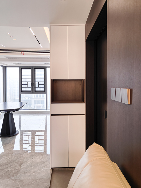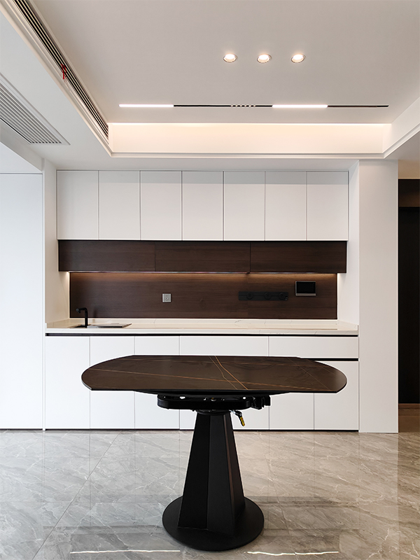 內(nèi)含燈帶的設計,很好地突出高級的調(diào)性,簡直將素雅輕奢感拉