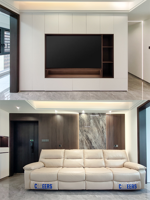 線條干凈利落,不僅給予屋主超好的觀影視線,也能將公區(qū)的零零碎碎裝入其中