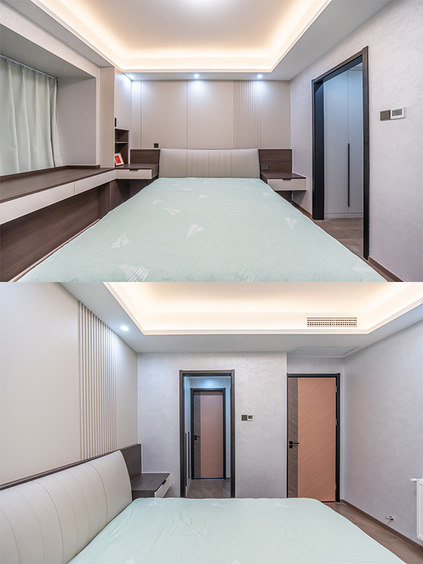 L 型衣柜,有藏有露書柜,各種細(xì)節(jié)塑造,讓空間層次更豐富