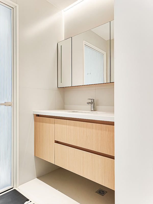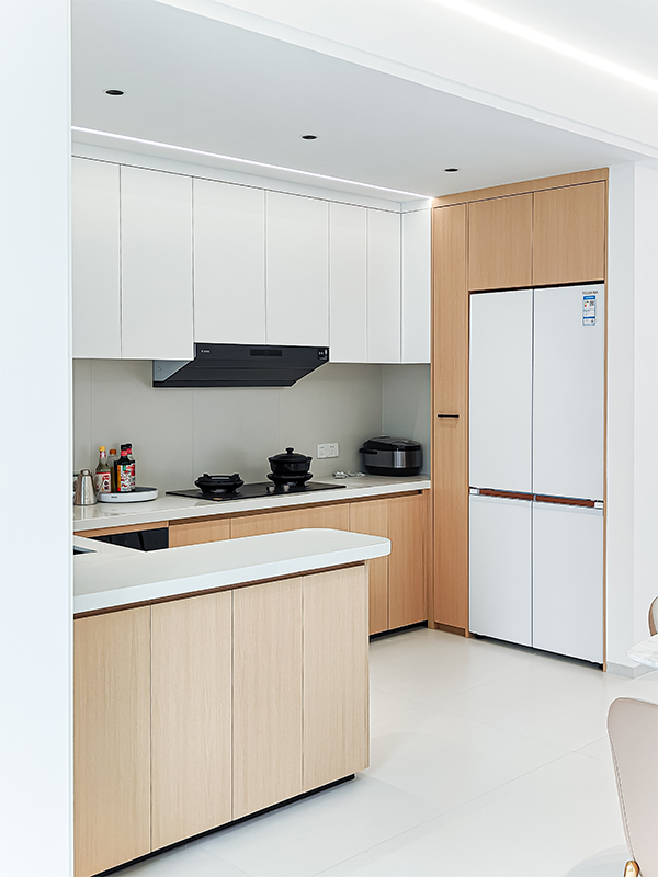 極簡感貫穿整個空間,原木色淡化了極簡風(fēng)帶來的疏離感,讓家有了溫度