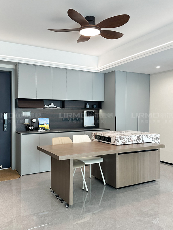 餐島一體的設(shè)計(jì),最大化的利用空間,增加普通餐廳的靈活性,島臺(tái)表面做巖板一體,美觀又好打理