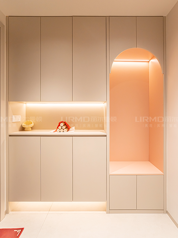 定制:柜體18厚杉木芯板、歐松板膚感柜門,進(jìn)口百隆五金,激光封邊