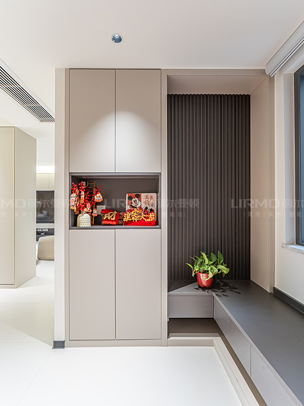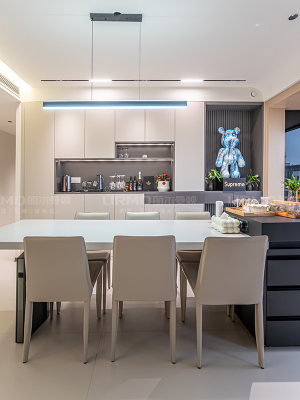 整體簡(jiǎn)潔通透,餐邊柜,電視柜增加儲(chǔ)物空間的同時(shí)視覺(jué)上更干凈整潔