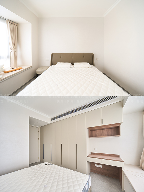 臥室柜做衣柜+書桌設計,充分利用收納空間