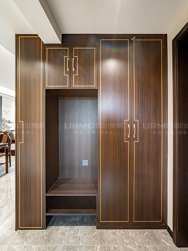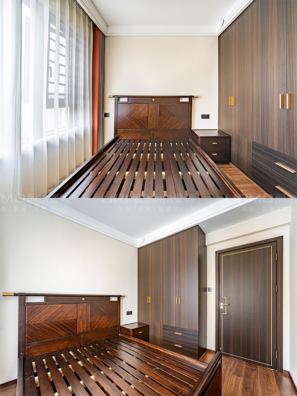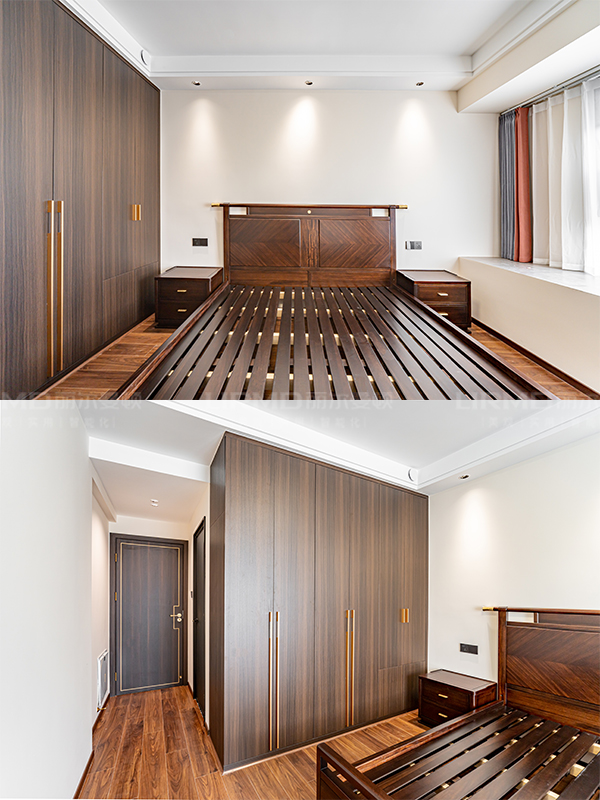 長沙靠譜裝修公司,長沙靠譜全屋定制,臥室衣柜加梳妝臺,新中式風,