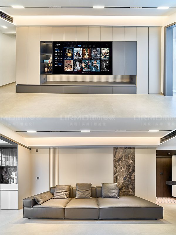 電箱位做隱形門,與沙發背景墻形成一體式設計,美觀又大氣。