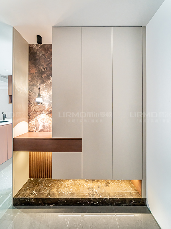 柜體底部懸空+感應燈帶,換鞋不摸黑