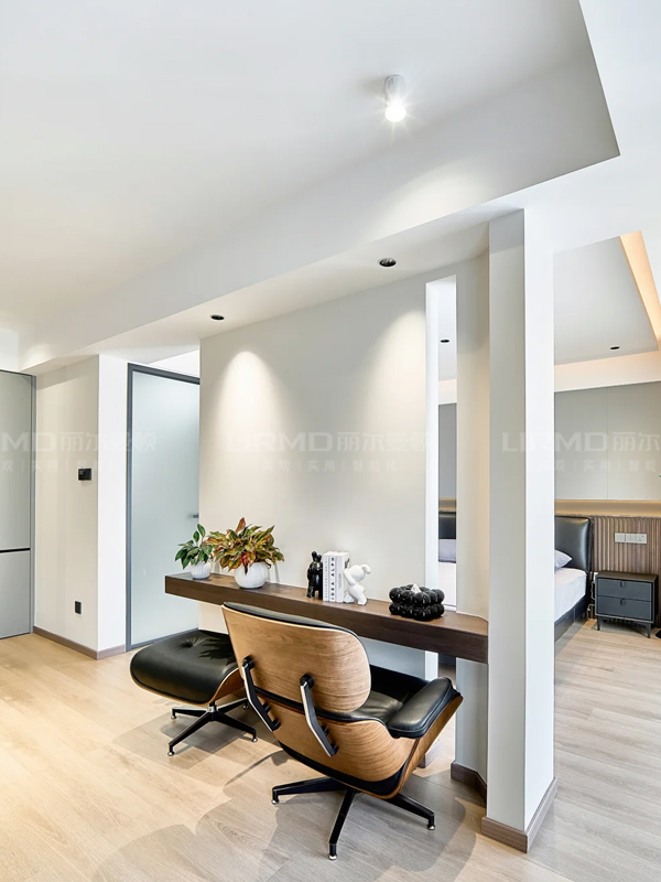 獨家定制電視墻:懸浮柜+ 會發光的時鐘燈帶
