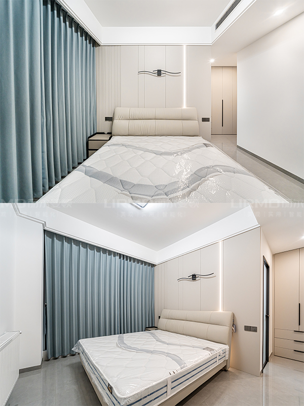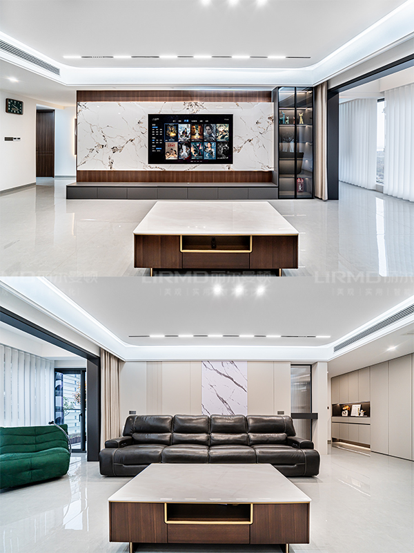 無主燈設計搭配線性燈帶,光影交錯間氛圍感拉滿,過道端景的燈帶更是點睛之筆,瞬間提升空間藝術感