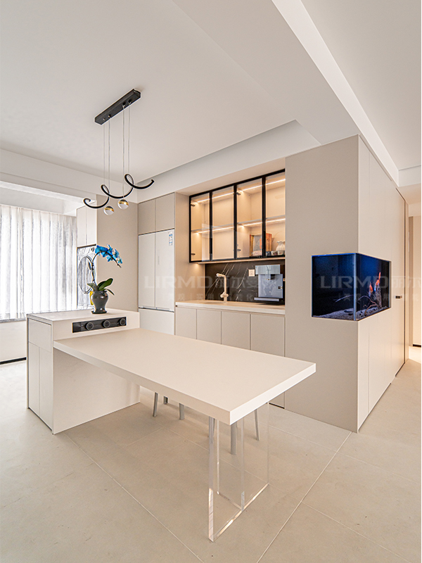 入戶第一眼:魚缸波光與灰調柜體交織,歸家即治愈